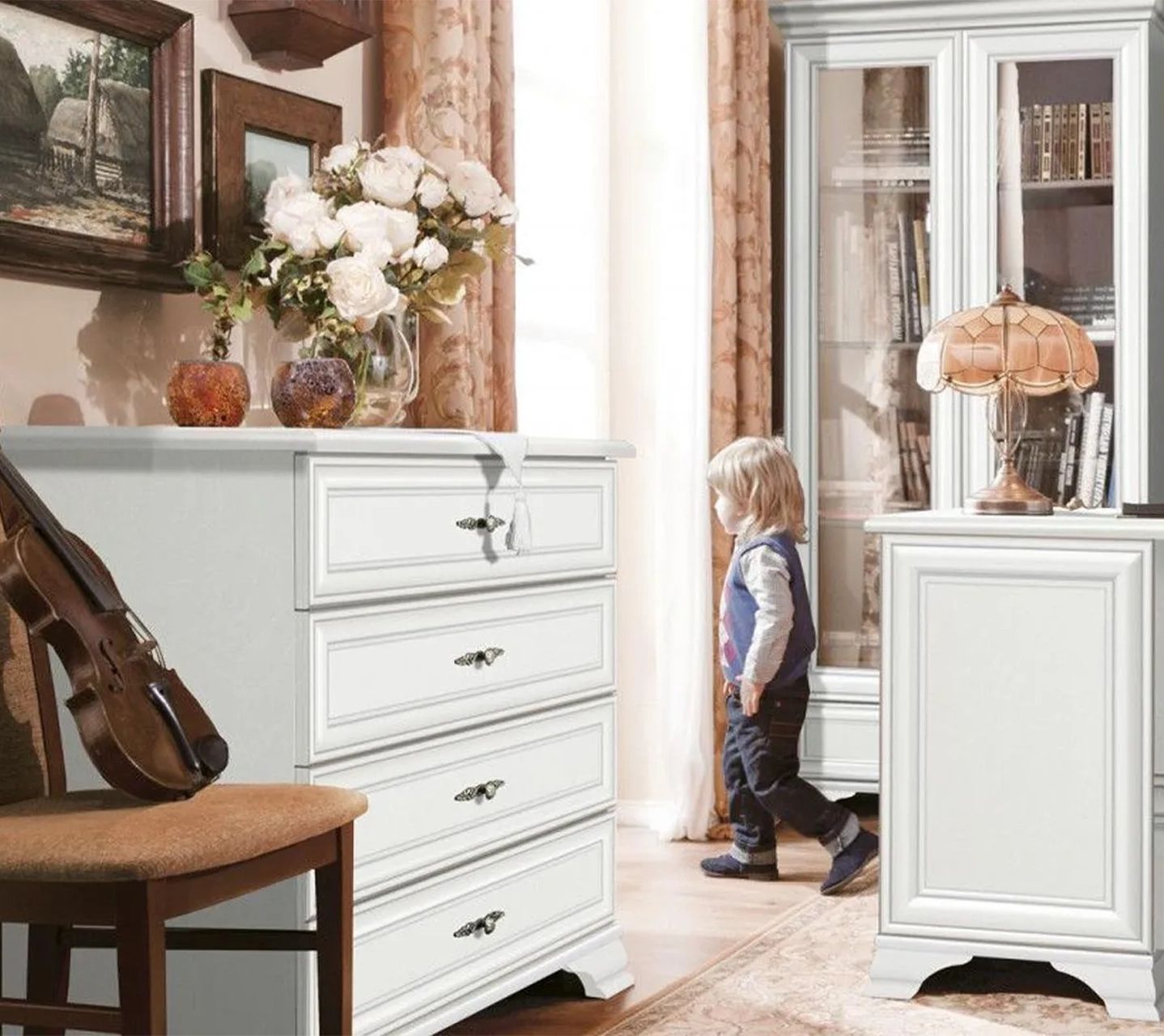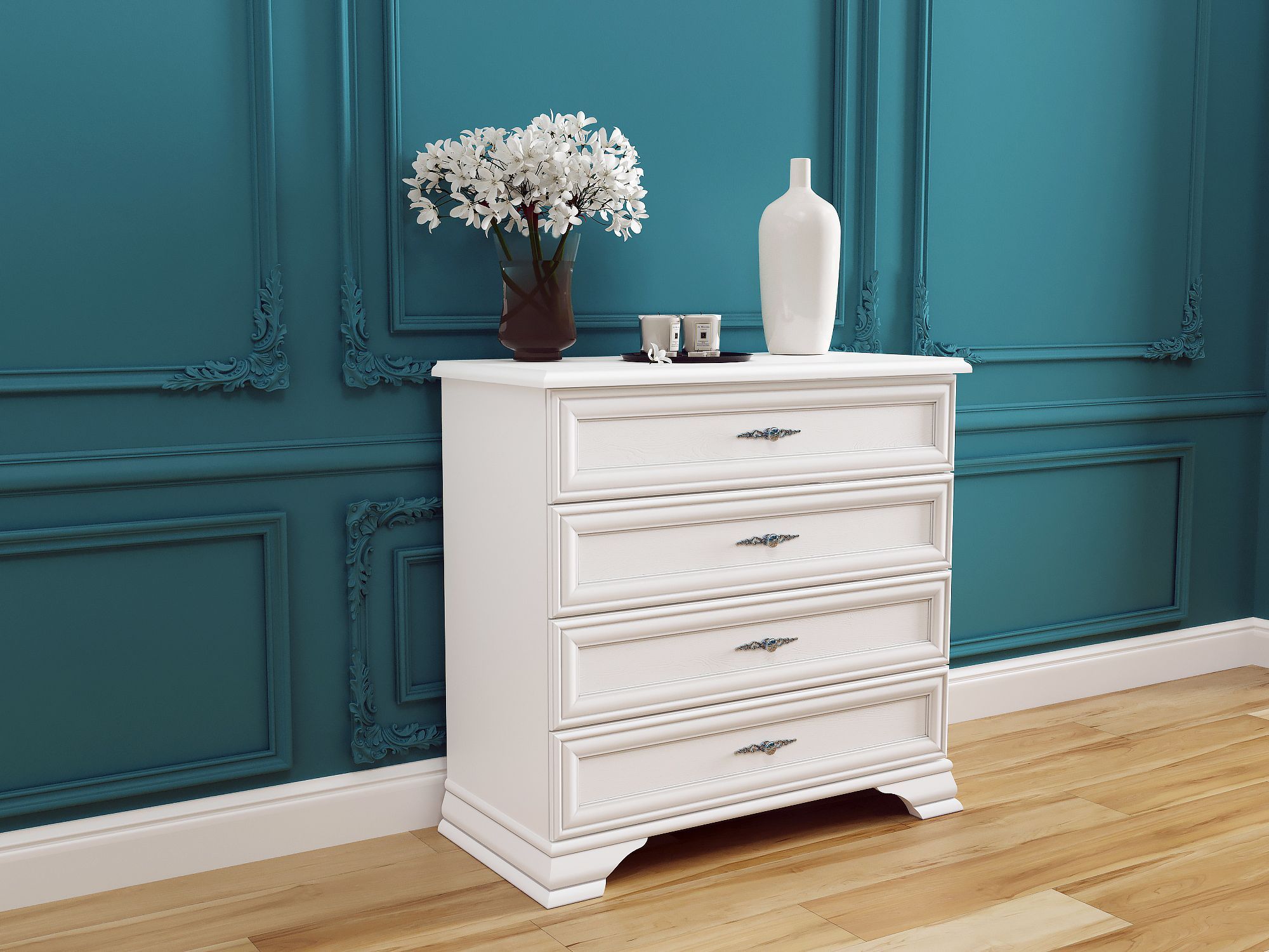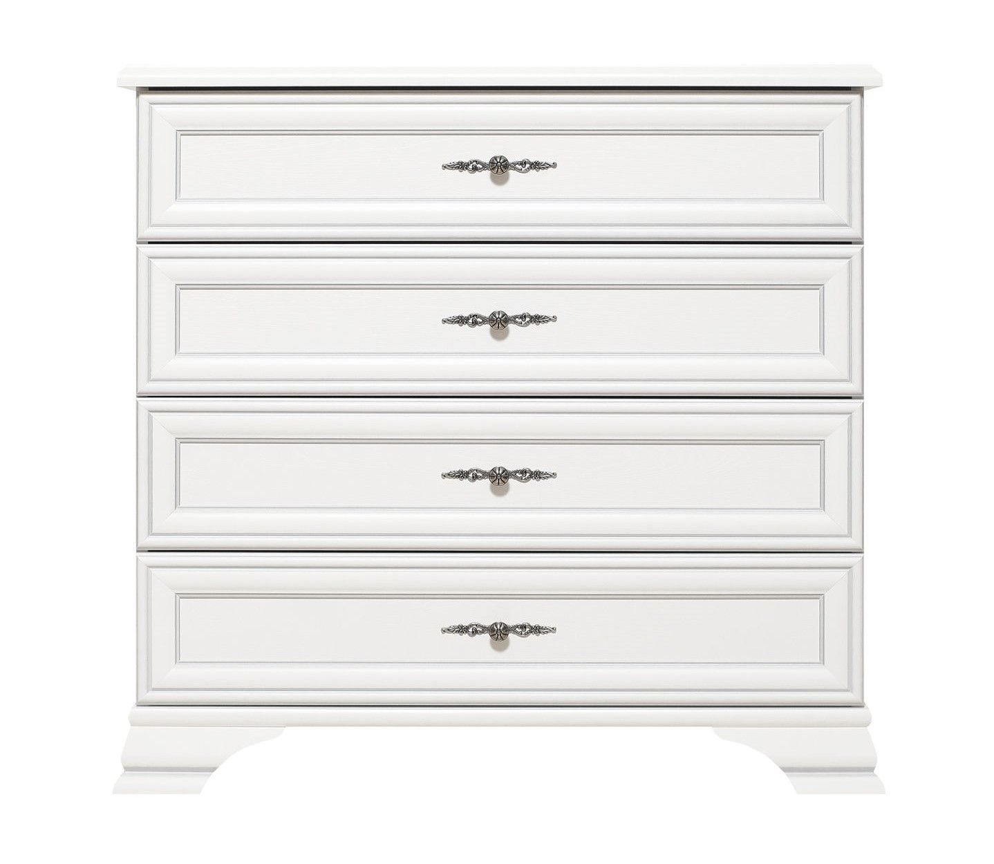 Комод БРВ МЕБЕЛЬ Кентаки - это стильный и функциональный элемент интерьера, который станет незаменимым помощником в организации пространства. Комод выполнен в классическом стиле, что позволяет ему гармонично вписаться в любой интерьер. Белый цвет корпуса и фасада придает изделию легкость и свежесть.