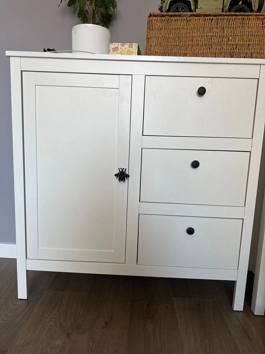 Хороший, не большой комод. Покупали серию в гостиную. Собрали быстро, по инструкции. Ручки полностью заменили