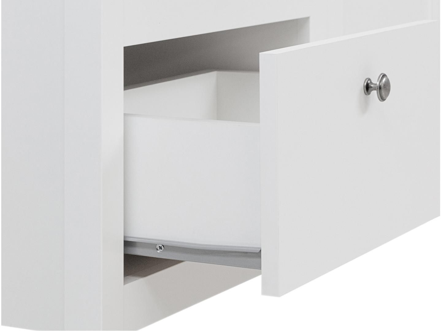 В тумбе белого цвета Ewa (Helga) можно хранить любые крупные и мелкие вещи. Пользоваться ей крайне удобно. Благодаря роликовым направляющим европейского производства ящики двигаются плавно и бесшумно. Маленькие круглые ручки обеспечивают удобный хват рукой и комфортное открывание/закрывание двери.