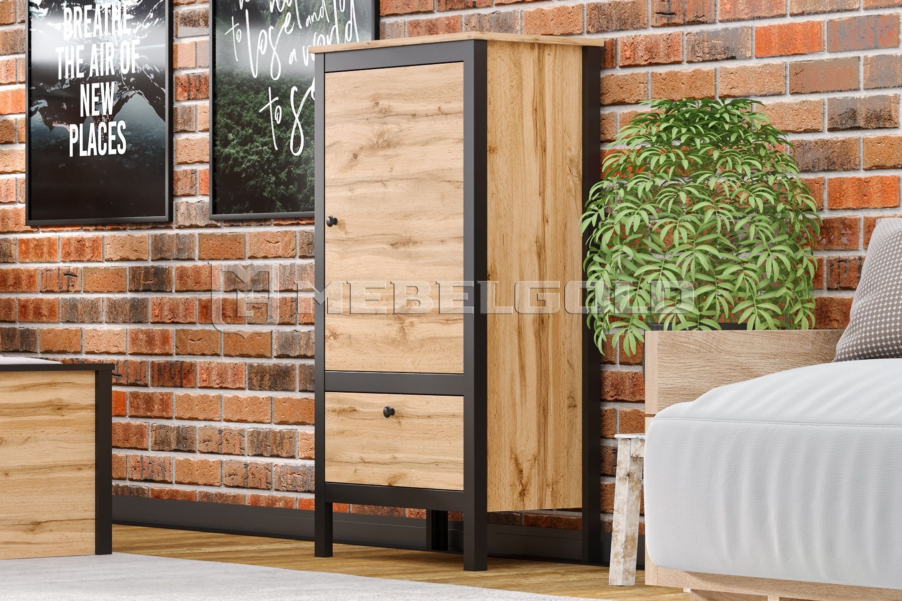 Тумба Loft высотой 120 см и шириной 62 см – оптимальное решение для небольших комнат урбанистического стиля. Здесь такая тенденция прослеживается в виде четких линий, правильных форм и минимального декора.