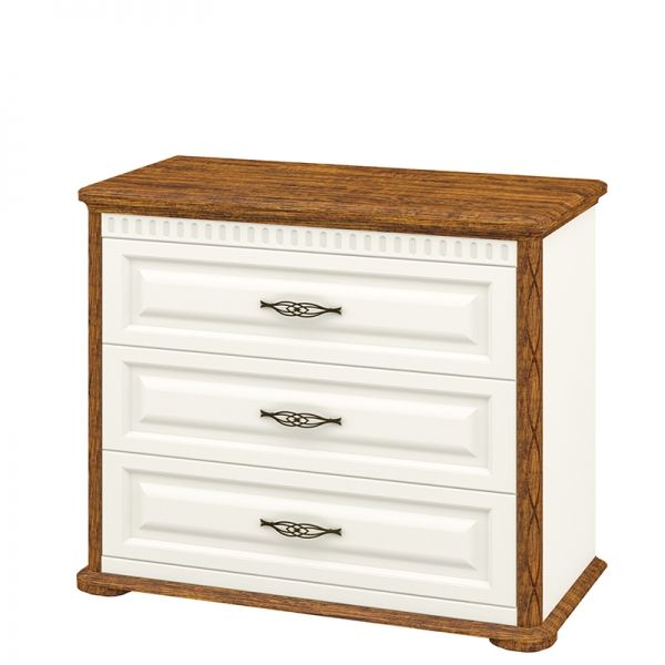 Бельевой комод для спальни МН-126-06 новой серии Марсель от Мебель-Неман. Теплый оттенок "крем" корпуса и фасадной части дополнен эффектным рамочным обрамлением контрастного цвета "дуб кантри".