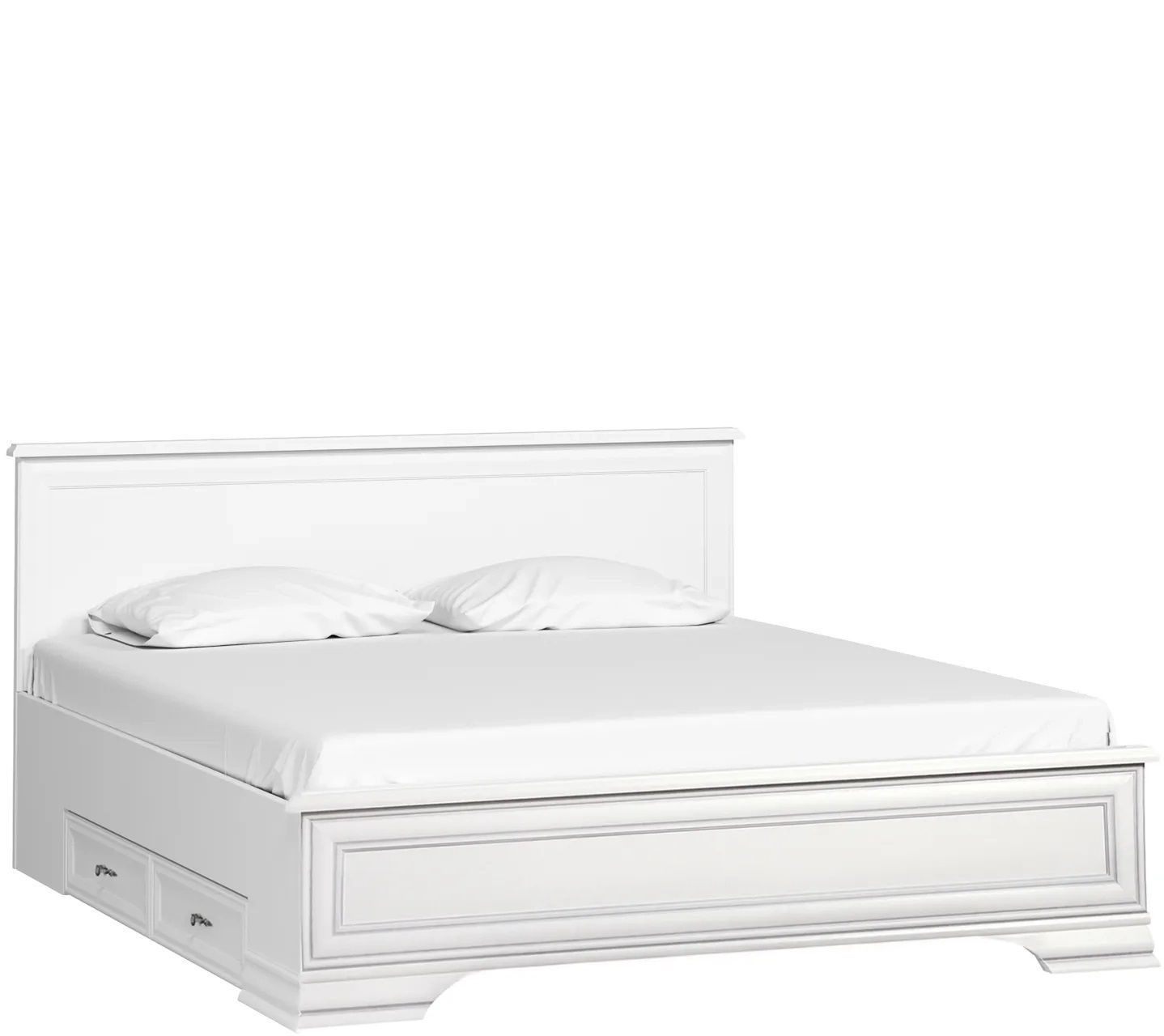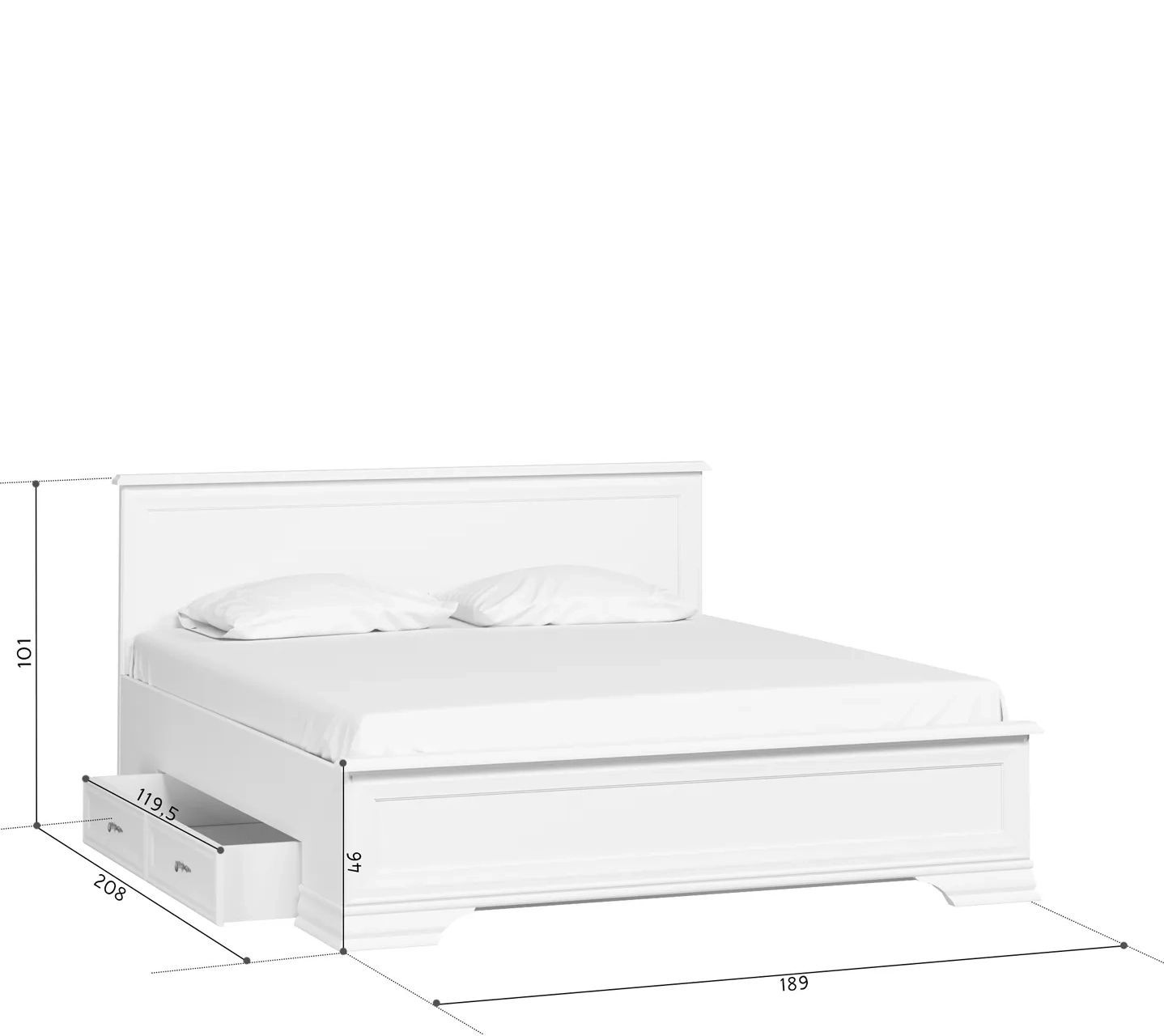 Просторная двуспальная кровать Kentaki производства Белоруссии имеет размер спального места 180х200 см. Ее корпус изготовлен из материалов высокой износостойкости ламинированной плиты ДСП и МДФ. Конструкция дополнена двумя выдвижными ящиками для хранения постельных принадлежностей, одеял и текстиля.