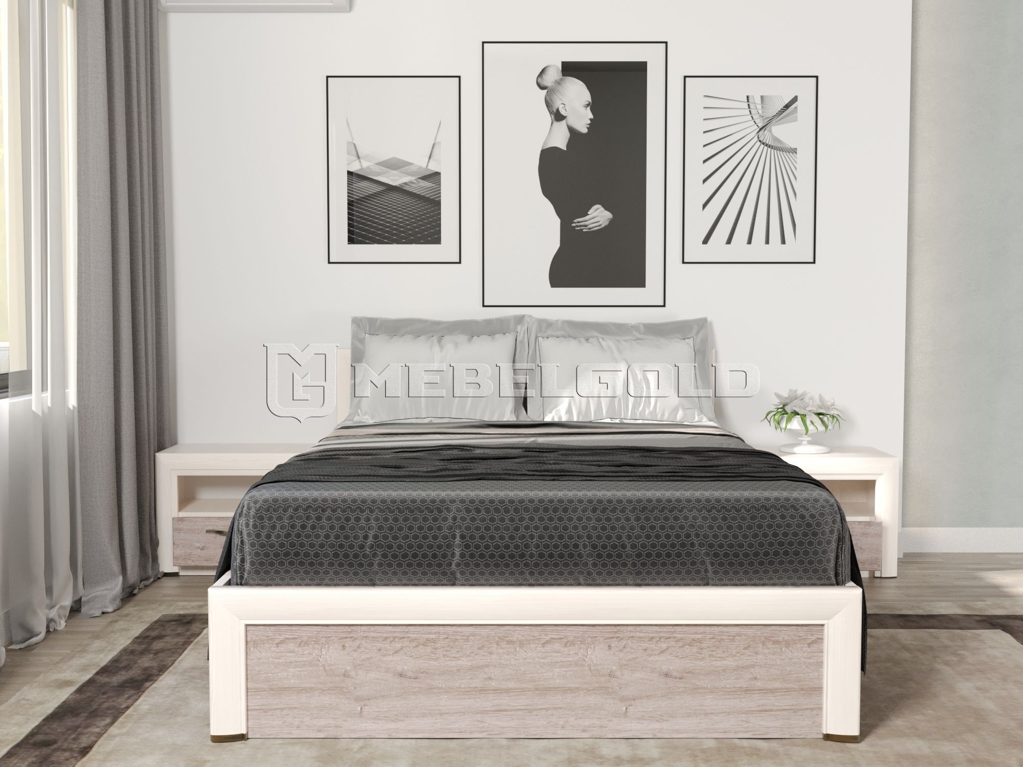 Белорусская кровать подъемником Olivia 140 см покрыта ламинированной пленкой в цвете крем вудлайн/дуб анкона. Она имеет теплый оттенок и продольные прожилки, придающие поверхности максимально естественный вид и сходство с натуральным деревом. По изголовью и изножью проходит декоративная патинированная вставка.