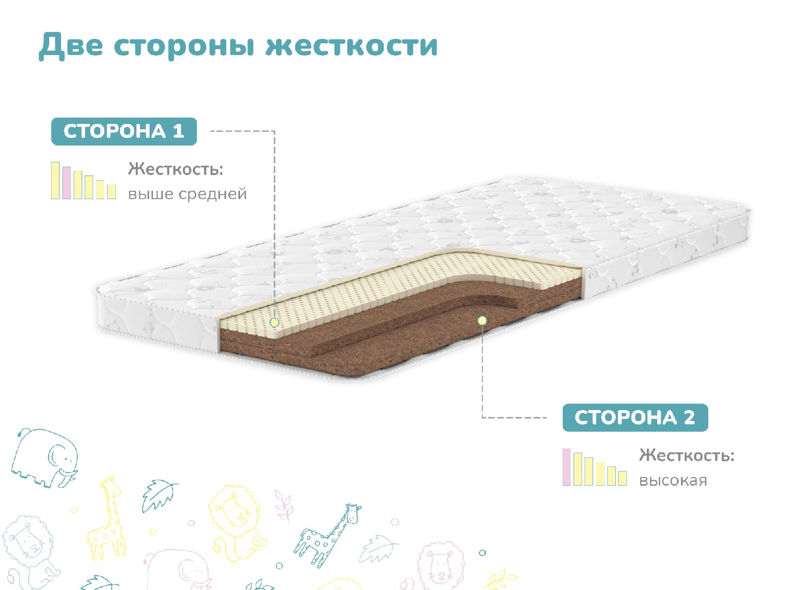 Матрас Дремушка Макси - вариант для тех родителей, которые желают, чтобы их кроха спал только на натуральных материалах. Латекс в сочетании с кокосовой койрой обеспечивает комфорт и надежную поддержку позвоночника малыша. Оба материала обладают анатомическим эффектом и не вызывают аллергии. Чехол без молнии выполнен из простеганного трикотажа с детским рисунком.