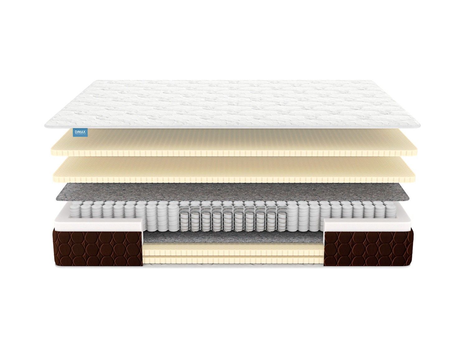 Боковая часть изготовлена из прочной мебельной ткани коричневого цвета и дополнена стёжкой на ППУ, что придаёт матрасу элегантный вид и увеличивает его долговечность.