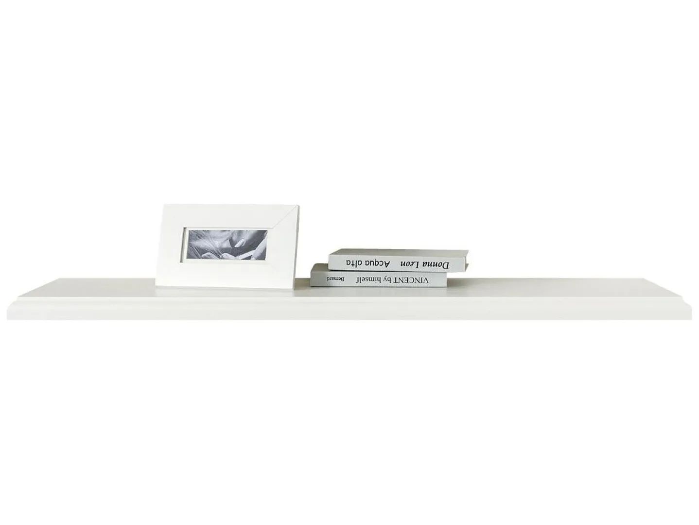 Навесная белая полка Kentaki производства Белоруссии – это лаконичное изделие классического и современного стиля. Его длина составляет 154,5 см, глубина 25 см и высота 3,2 см. Этих размеров достаточно, чтобы уместить на поверхности вазы, сувениры, декоративные свечи и фото. Конструкция надежно крепится на металлические кронштейны и фиксаторы и выдерживает вес до 10 кг.