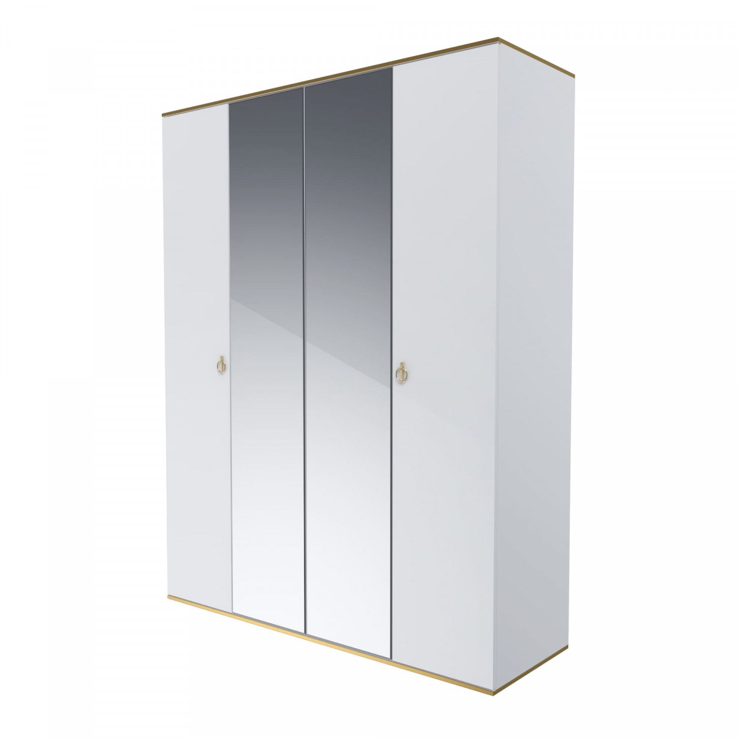 Шкаф 4-х дверный с зеркалом Римини (Белый/Золото) РМШ1/4