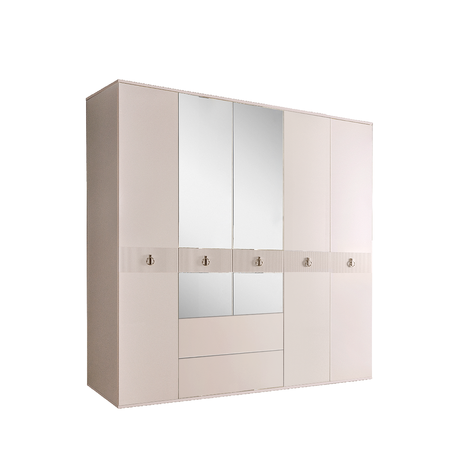 Шкаф 5-ти дверный с зеркалом, с ящиками Римини СОЛО (Бежевый/Серебро) РМШ1/51(s)