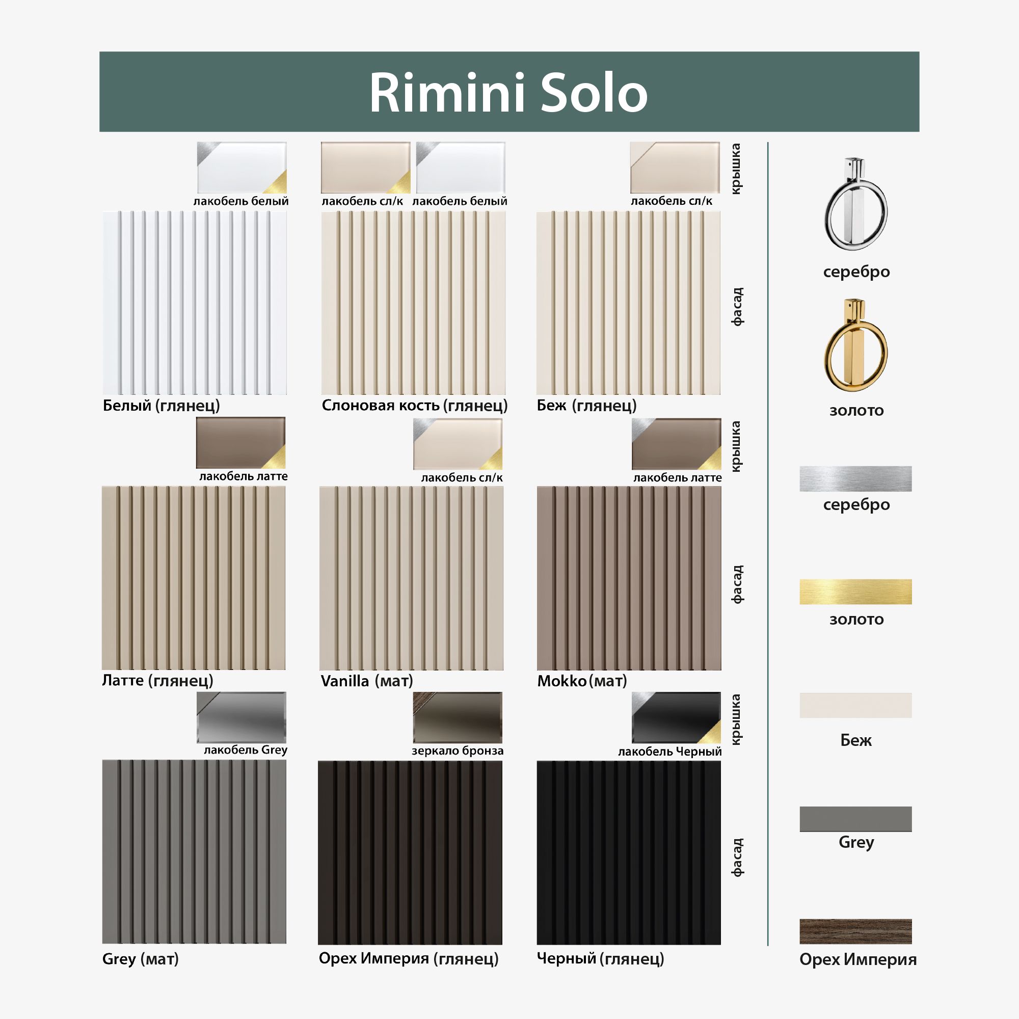 В дизайне 6-ти створчатого шкафа Rimini Solo преобладает лаконичность и простота, особый акцент сделан на утонченности и умеренности декора. Приятные и модные цвета, элегантные планки под золото или серебро, ручки-кольца в аналогичном оттенке и фрезерованные вставки в этой модели достигли идеальной гармонии.