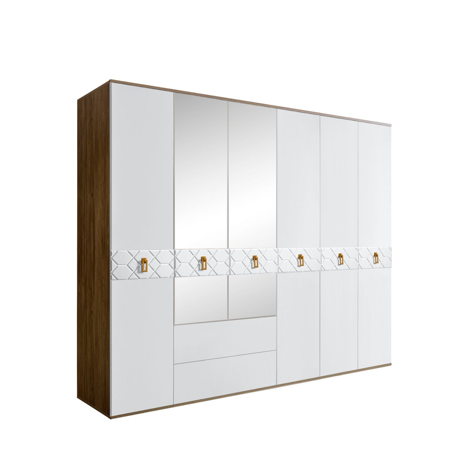 Шкаф 6-ти дверный с зеркалами, с ящиками, Bogemia Woodline Fa (Белый/Золото) БМШ1/61(Fa)