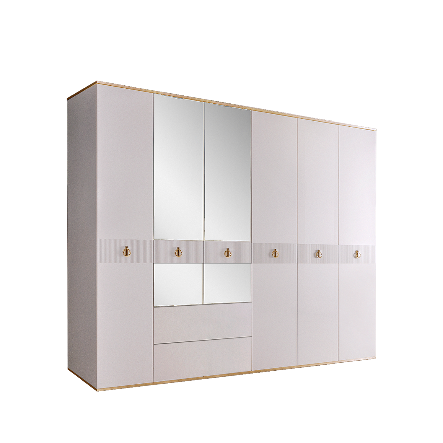 Шкаф 6-ти дверный с зеркалом, с ящиками Римини СОЛО (Белый/Золото) РМШ1/61(s)