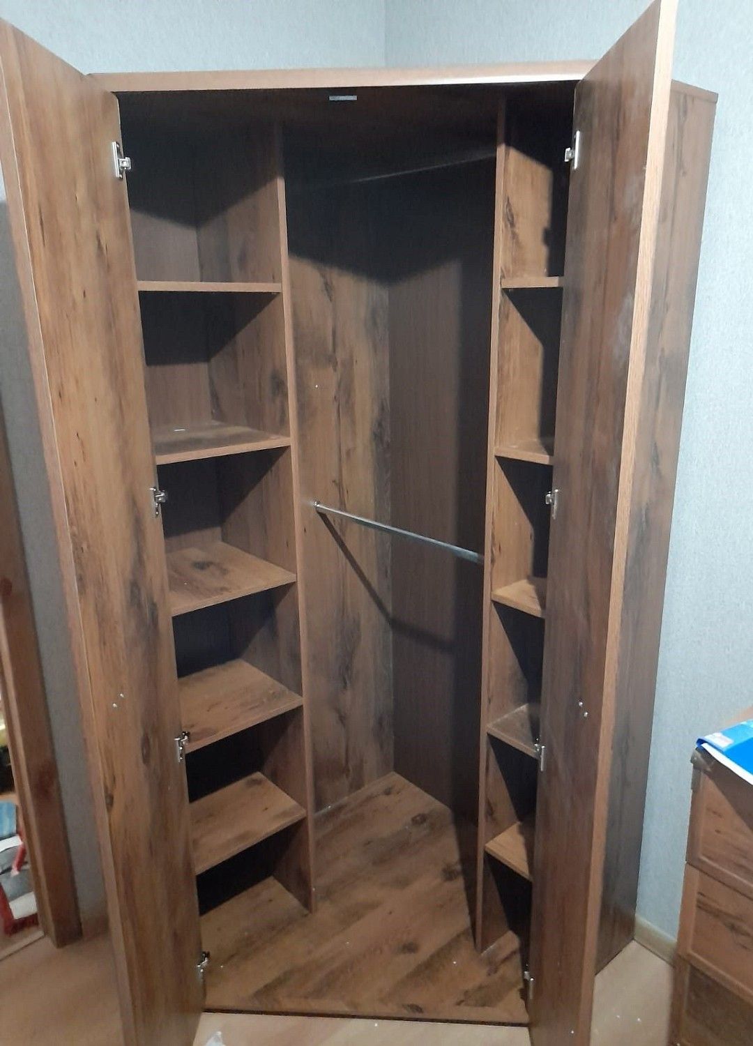 Планировали купить шкаф традиционной конструкции. Когда увидели этот, то поняли, что он идеально впишется в свободное пространство в углу комнаты, оставив больше свободного места. Очень красивая древесная фактура, качественные материалы, надежная фурнитура. Покупкой довольны.