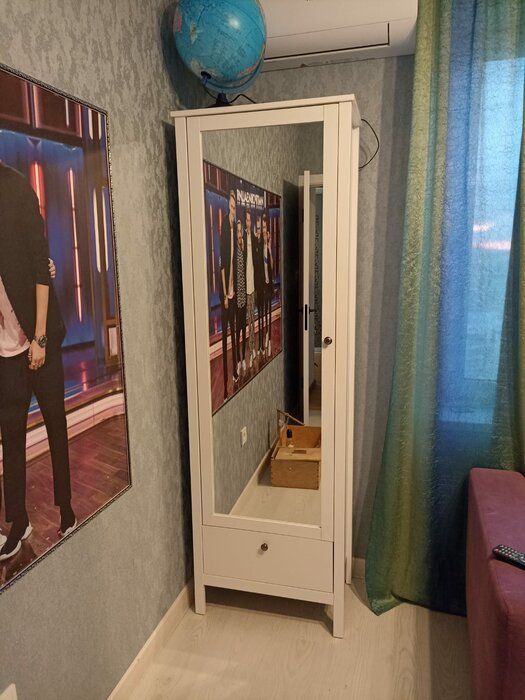 Искала шкафчик ребенку-подростку в комнату. Нужен был неширокий ( т.к. комната небольшая), белый, со штангой под плечики, ящиком, зеркалом и полочкой. Перелопатила тонну шкафов. Этот самый оптимальный вариант оказался и по функционалу и по стоимости. Боялась за зеркало, т.к. в предыдущих отзовах было написано, что оно никак не закрыто с обратной стороны. но все-таки решилась. По зеркалу : оно прямо собрано в фасад, поэтому достаточно крепко и надежно зафиксировано. По фасадам : несмотря на то, что весь шкаф, в том числе и фасады выполнены из ДСП, объемные стоевые по углам создают иллюзию того, что это МДФ с фрезеровкой, т.е. украшают шкаф и не простят его, в отличии от всех других моделей шкафов из ЛДСП. По сборке : сборка достаточна проста, как конструктор, даже я ( женщина) смогла его собрать, единственное несоответствие - это задняя стенка ХДФ. Она выполнена не в размер, и, если следовать точно инструкции, она не встает, т.к. шире. Есть два пособа решения : 1)упилить ХДФ по ширине ( но навряд ли у каждого дома найдется торцовочник или электролобзик); 2) открутить задние стоевые (которые угловые), положить хдф ( кстати тогда она точно встает в паз на верхней крышке), приколотить её по периметру, а затем вновь прикрутить стоевые. Мы так и сделали. Поэтому, когда начнете собирать, обратите на это внимание и не прикручивайте детали №7 до того, пока не поставите заднюю стенку ХДФ. По качеству : выполнено идеально, все кромки в порядке. единственное, что у нас был поврежден фасад ящика, видимо при транспортировке. Написали в поддержку, выслали фото и видео, с нами оперативно связались и обещали выслать поврежденную деталь в ближайшие дни. Пока собрали с поврежденной. В целом советую, Шкаф хороший.
