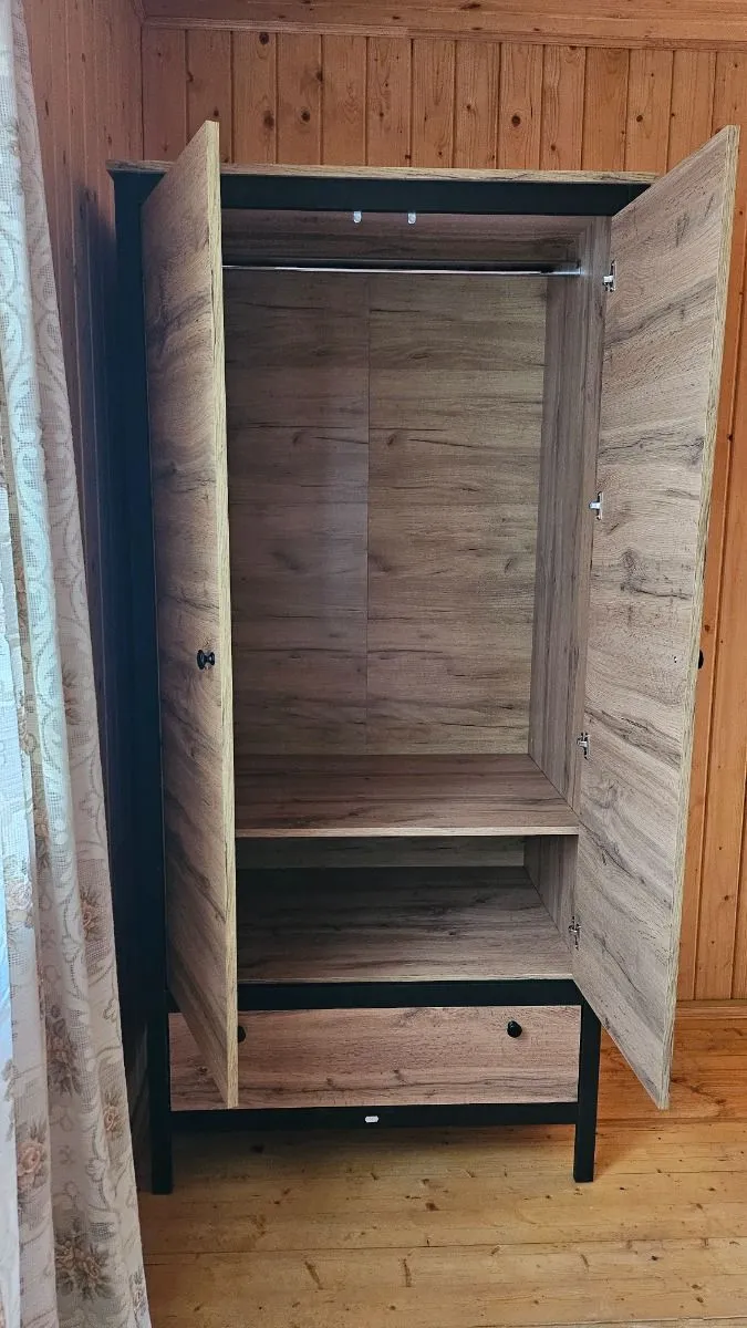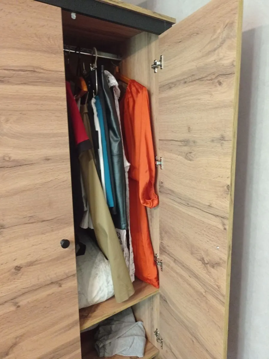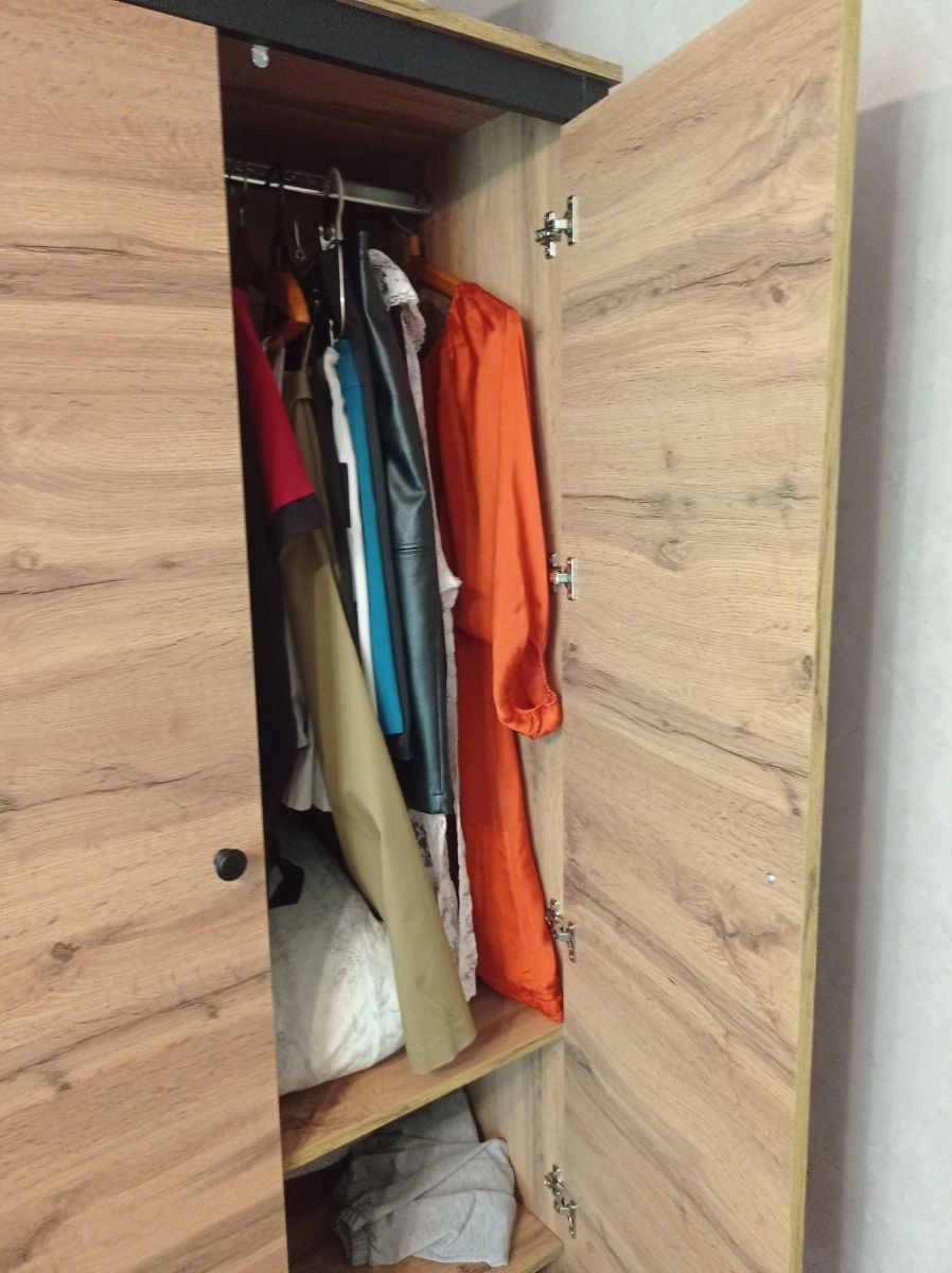 Платяной двустворчатый шкаф можно поставить в любую жилую комнату или прихожую. При высоте 192 см и ширине 92 см он займет небольшое пространство и позволит навести порядок в доме. Выдвижной ящик глубиной 60 см добавит изделию еще больше функциональности и обеспечит беспрепятственный доступ к самым дальним углам. Его дно усилено металлической планкой, что исключает провисание даже при полной загрузке.