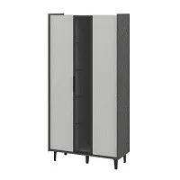 Шкаф трёх дверный, с двумя распашными дверьми на системе push-to-open, и одной дверью витриной в алюминиевом профиле 20х20мм в цвете: чёрный брашированный, стекло с тёмной тонировкой полки стеклянные с тёмной тонировкой, толщиной 6мм петли плавного закрывания