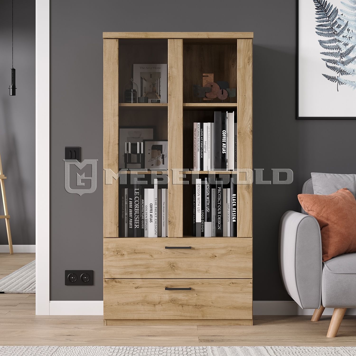 Утонченный европейский дизайн и цвет дуба наварра делает шкаф с витриной Doorset 1V2S3N заметной фигурой в интерьере. Толщина его корпуса составляет 16 мм, для защиты от сколов торцы оклеены пленкой ПВХ. Эта модель глубиной 41 см и шириной 80 см подойдет небольшим гостиным и рабочим кабинетам современного стиля. Ее можно использовать для хранения декора и любых красивых вещей. Они всегда будут на виду и не испортятся от внешнего воздействия.