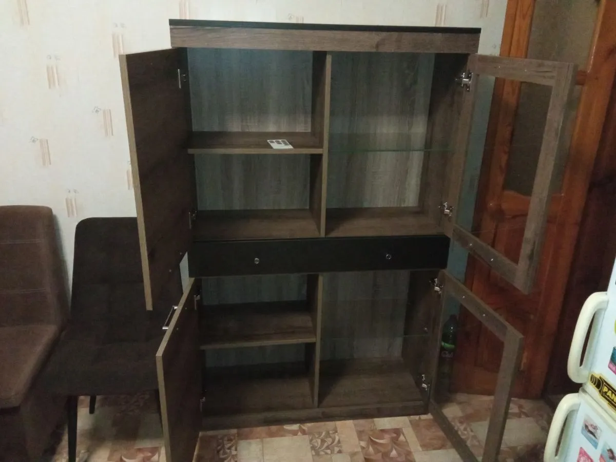 Качество изделия и доставка идеальны. Только светодиодов нет. Мы даже сумели изменить модель: Стекло наверху, а глухие дверцы внизу. Но подсветку сами будем доделывать и делать... А было бы идеально!