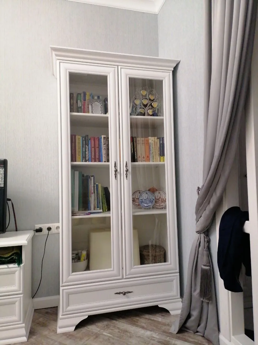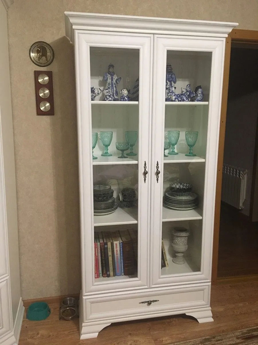 Белая витрина Kentaki является образцом элегантности и совершенства. Резные карнизы, фасонные ножки, проходящая по контуру элегантная вставка из МДФ и идеальная геометрия. Шкаф-витрина имеет универсальную ориентацию: его двери можно устанавливать с левой или правой стороны. Для удобства хранения предусмотрены 3 полки-отделения. Они находятся за плотным, прозрачным стеклом.