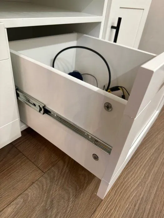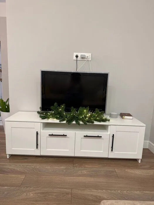 Тумба СИРИУС под телевизор напольная двухдверная с нишей и двумя наружными выдвижными ящиками, 1560х412х471, цвет Белый. Изготовлена из кашированного ДСП толщиной 16 мм. Крепится к стене. Гарантийный срок для жилых помещений 24 месяца, для общественных помещений - 18 месяцев.