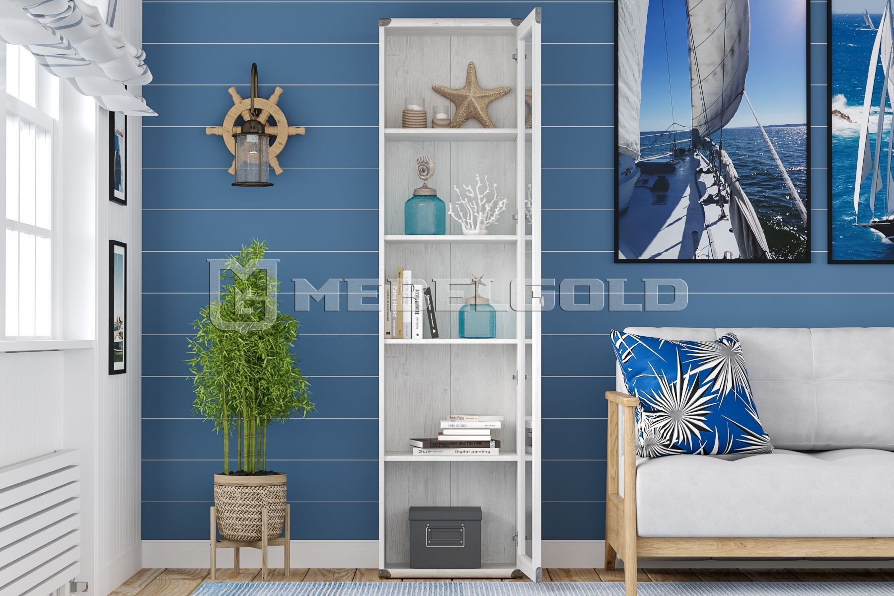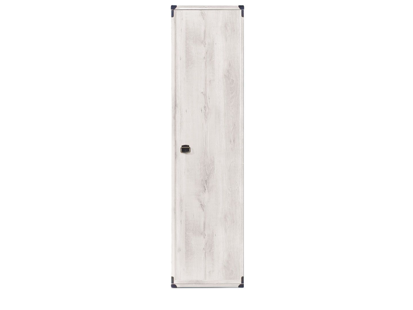 Высокий одностворчатый шкаф Indiana представлен в цвете сосна каньон. Его фасады светлого цвета дополнены металлическими накладками на углах и латунными ручками по типу подковы. Модель в такой отделке является приоритетным вариантом для классических интерьеров и комнат, оформленных в стиле кантри. Ее можно установить в детской, гостиной или домашней библиотеке. Мини-шкаф легко впишется в узкое пространство и эффективно решит поставленные задачи.
