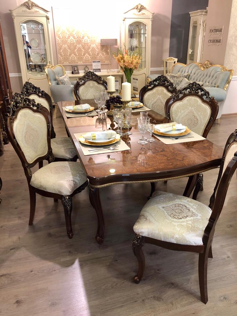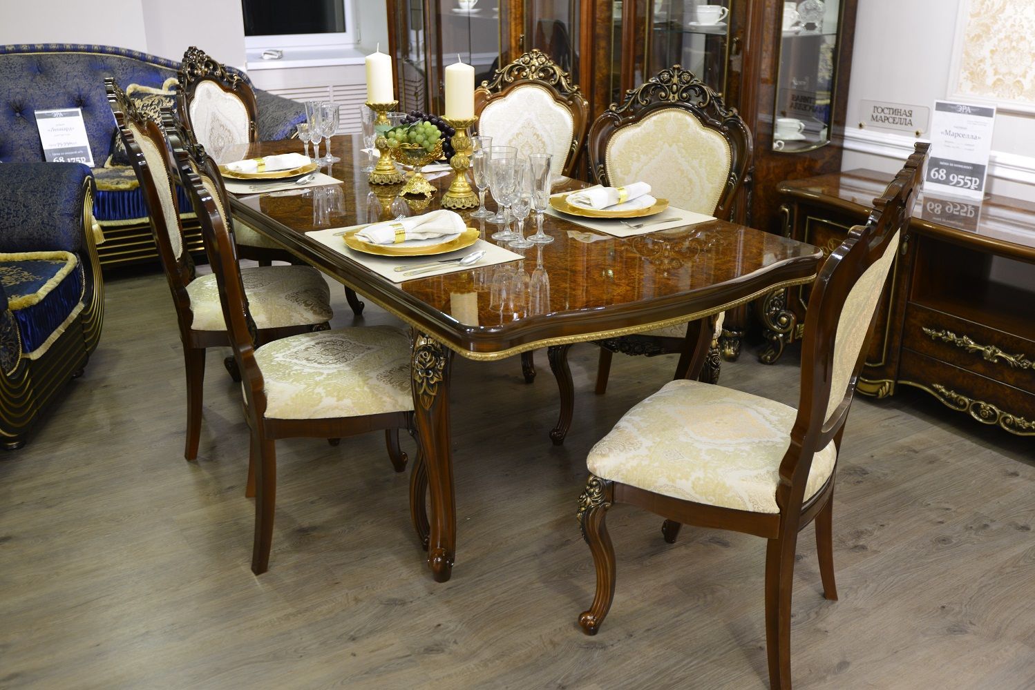 Обеденный стол «Джоконда» имеет прямоугольную форму, по его периметру проходят ажурные узоры, а на основании ножек изображены объемные розы. Модель отличается необыкновенной элегантностью и способностью вписываться в интерьер гостиной и домашней столовой. Это беспроигрышное решение для ежедневных обедов и праздничных ужинов.