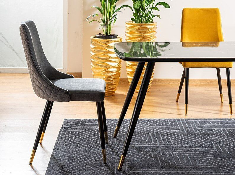 Стол обеденный Signal CYRYL I (эффект черного камня/черный/золотой)
