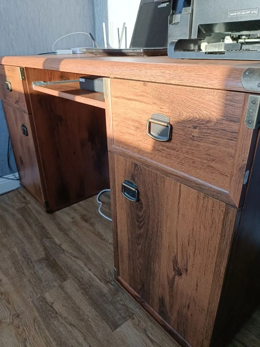 Большой стол, я о таком мечтала, удобный, все под рукой благодаря ящикам и полкам. Полноценный письменный стол.