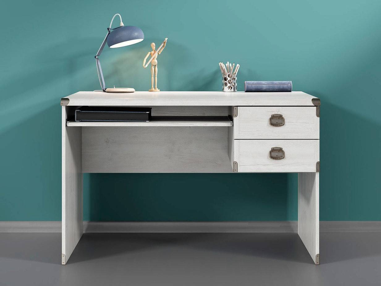 Письменный стол Indiana размером 120×65 см – это решение для тех, кто планирует на небольшом пространстве обустроить полноценный рабочий уголок. Он состоит из устойчивого каркаса, двух небольших ящиков 39×15 см и отделения для клавиатуры длиной 75 см. По обеим сторонам установлены широкие боковины, придающие изделию устойчивость и законченный вид.