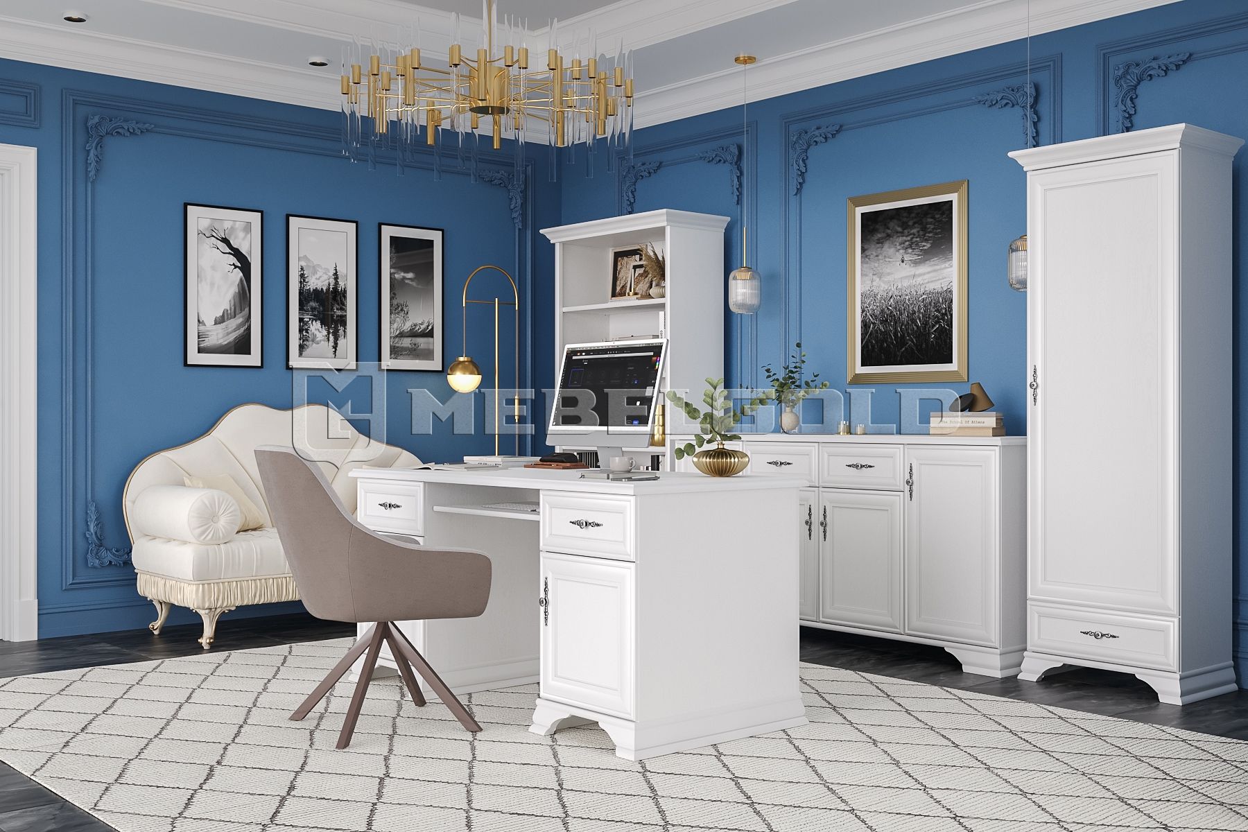Фасады такой мебели украшены филенками и элегантными металлическими ручками. Устойчивость конструкции придают широкие, массивные ножки. Белый письменный стол серии Kentaki – отличный вариант для обустройства учебной и рабочей зоны. Он отлично вписывается в интерьер аналогичной стилистики и цветовой гаммы.