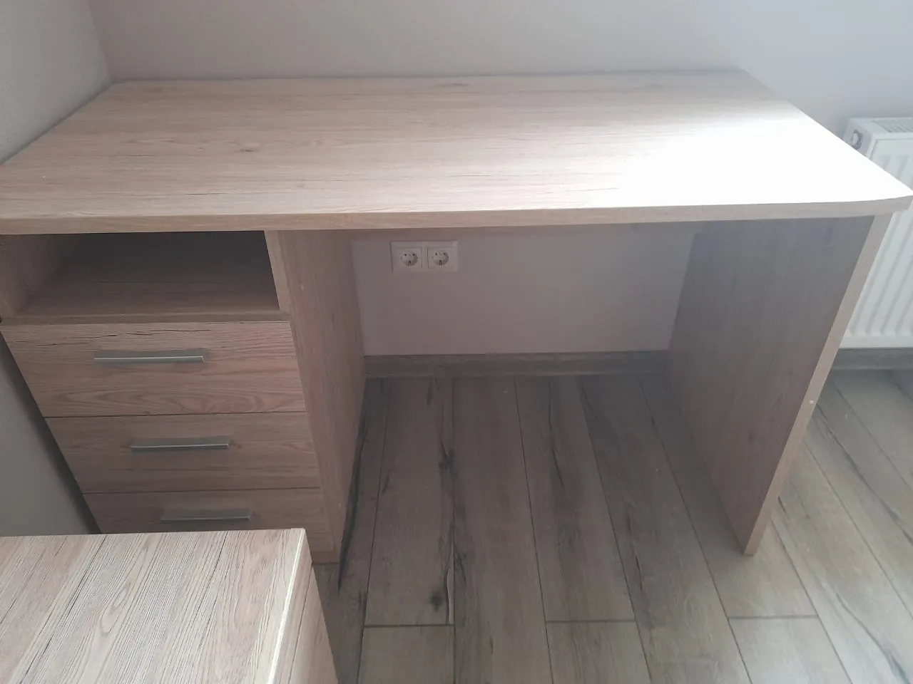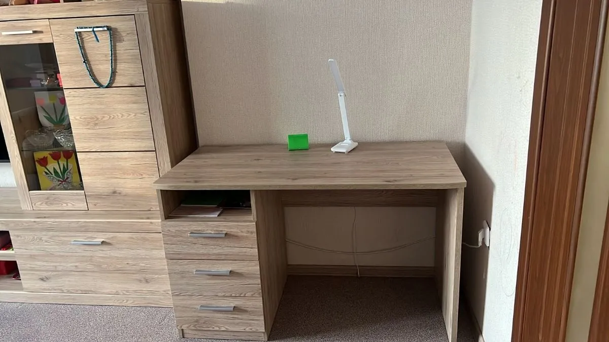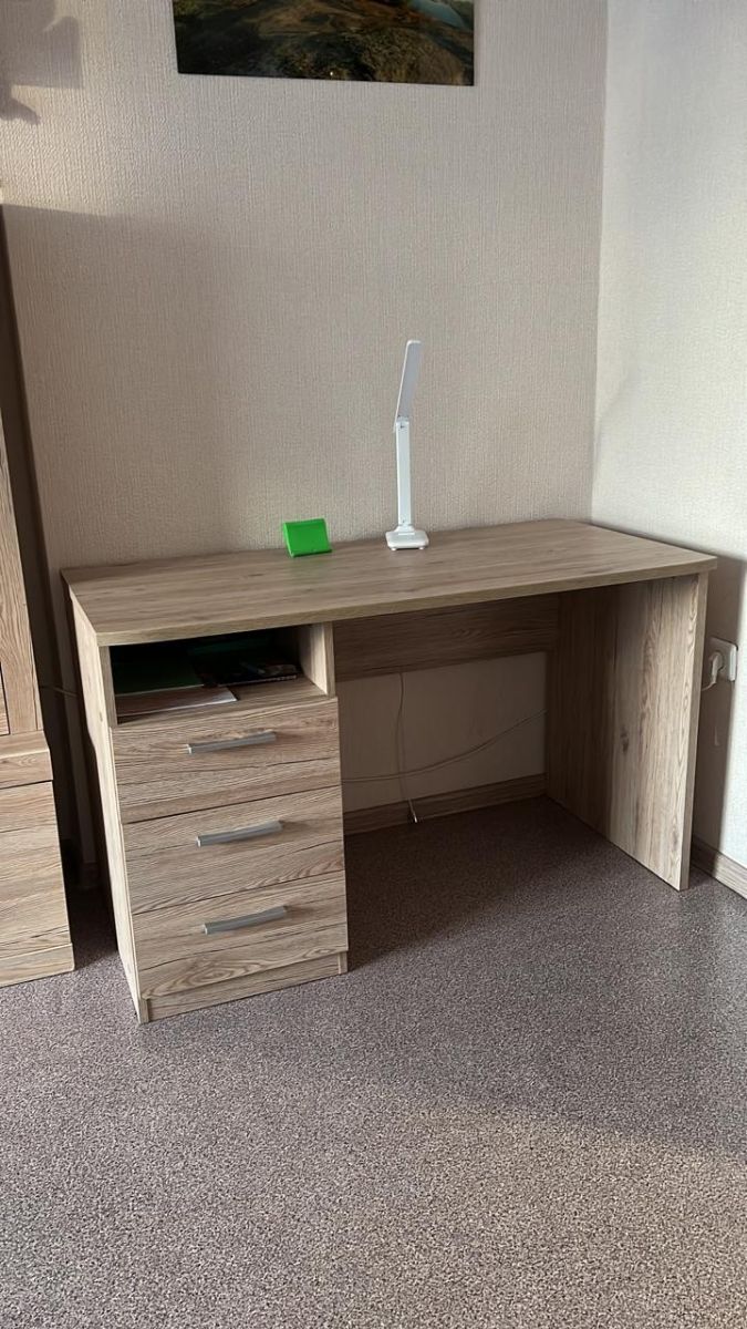 Купил сыну в комнату компьютерный стол и стеллаж. Задумка такая, что стеллаж визуально разделяет спальню на зону для отдыха и рабочую зону. Стол очень компактный, но при этом не маленький. Есть выдвижные ящики, в которые можно складывать тетради или учебники. Очень удобная мебель, занимает не слишком много места, при этом оставляя достаточно свободного пространства. Ну и сыну, конечно, нравится.