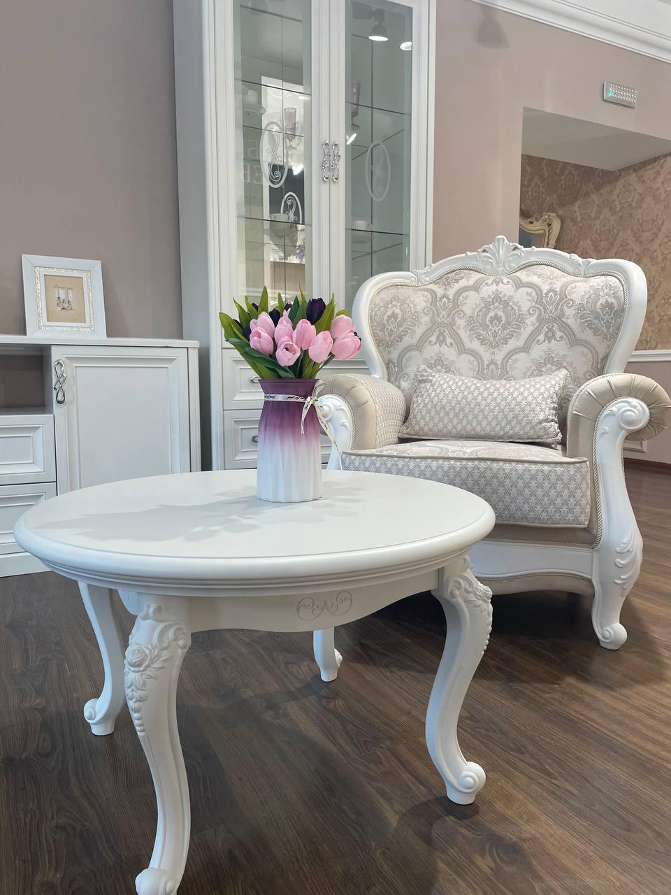 Столы и стулья из коллекции «Мишель» позволяют хозяевам принимать гостей или встречаться на семейном ужине в королевской обстановке. Обивка мягких стульев с изящными линиями и минималистичным декором прекрасно соответствует стилю общего гарнитура. Мебель создает в столовой атмосферу аристократичности и роскоши, в которой приятно находиться. Столы и стулья из этой коллекции останутся актуальными даже по прошествию десятилетий.