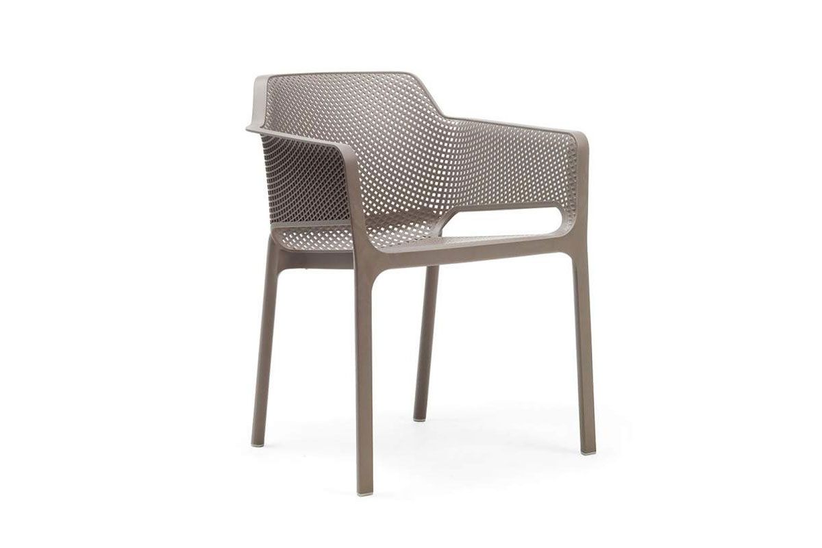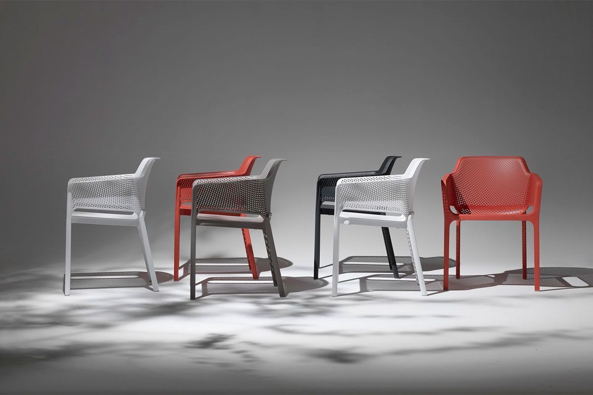 Цельнолитое кресло Net имеет эргономичную форму и прекрасно подойдет для организации обеденных зон на верандах летних кафе или патио.