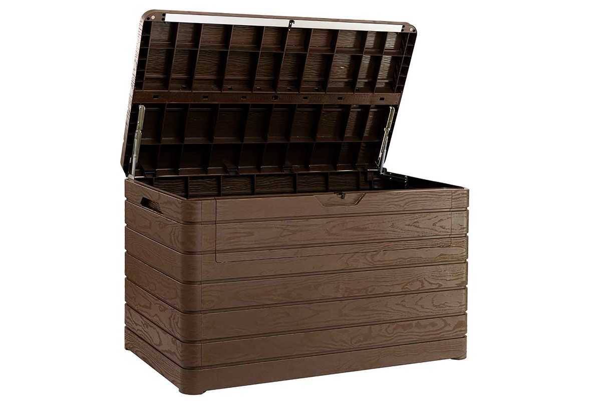 В сундуке достаточно места для хранения садовых инструментов, подушек, мебели для патио и многого другого.