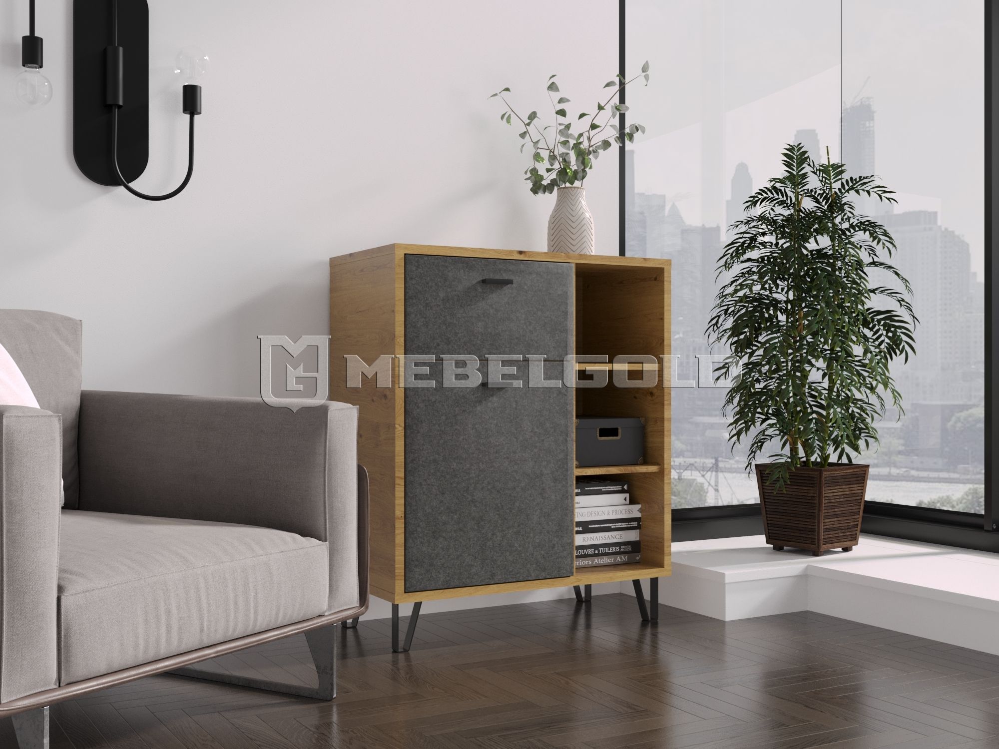 Напольный комод Grace – изюминка коллекции белорусского производителя BRW-мебель. Его отличает оригинальная конструкция, в которой распашную дверь гармонично дополняет ящик и открытое отделение. Модель с высотой 94 см, шириной 79 см и глубиной 41 см легко вписывается в небольшое пространство и создает вместительный блок для хранения вещей.