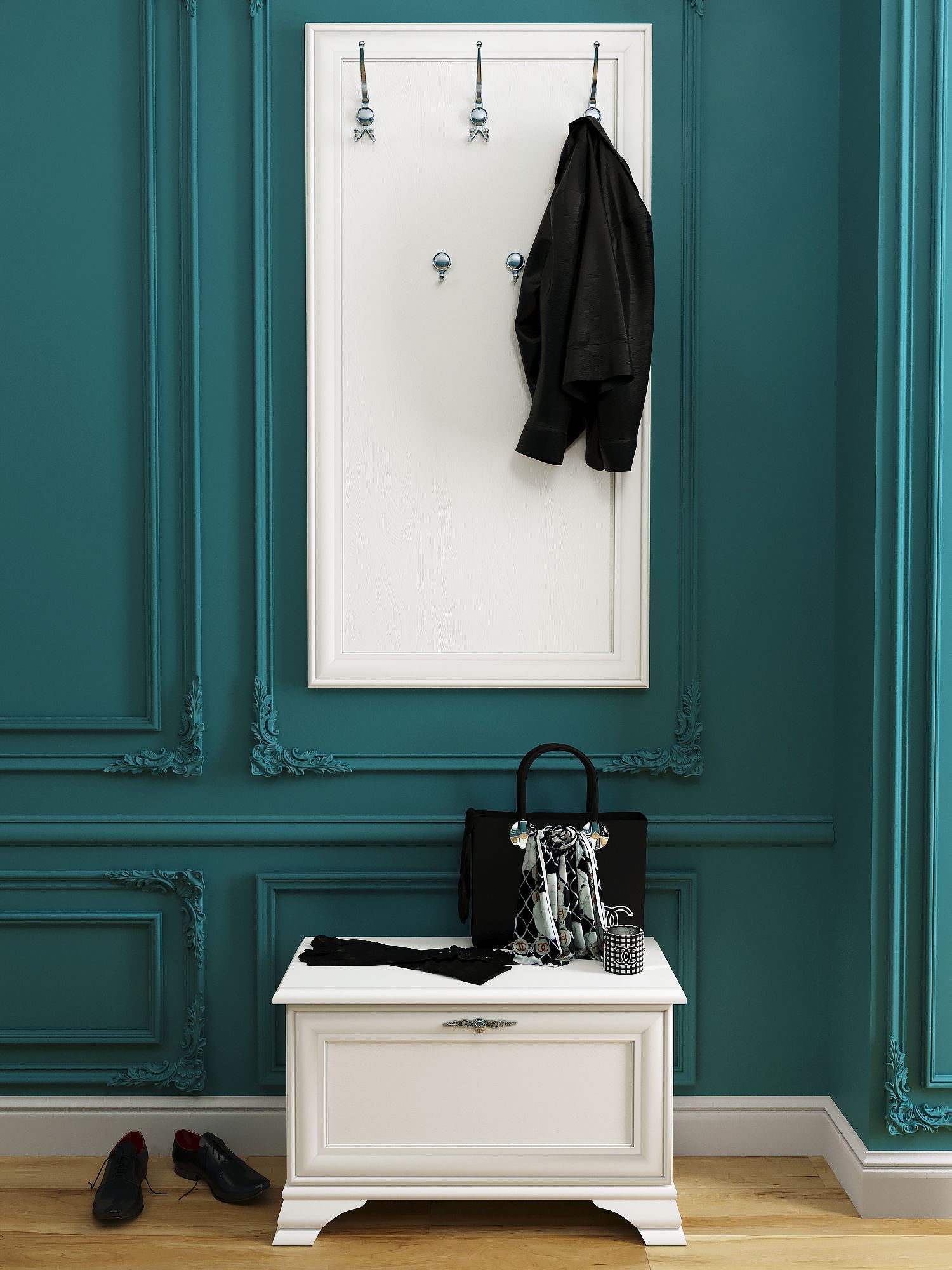 В интерьере белую тумбу Kentaki можно использовать отдельно, а также в комплекте с зеркалом или пристенной обувницей.
