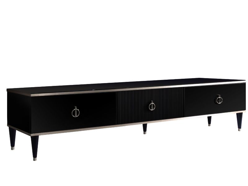 Тумба под телевизор 3 ящика Римини СОЛО (Черный/Серебро) РМТ-4(s)