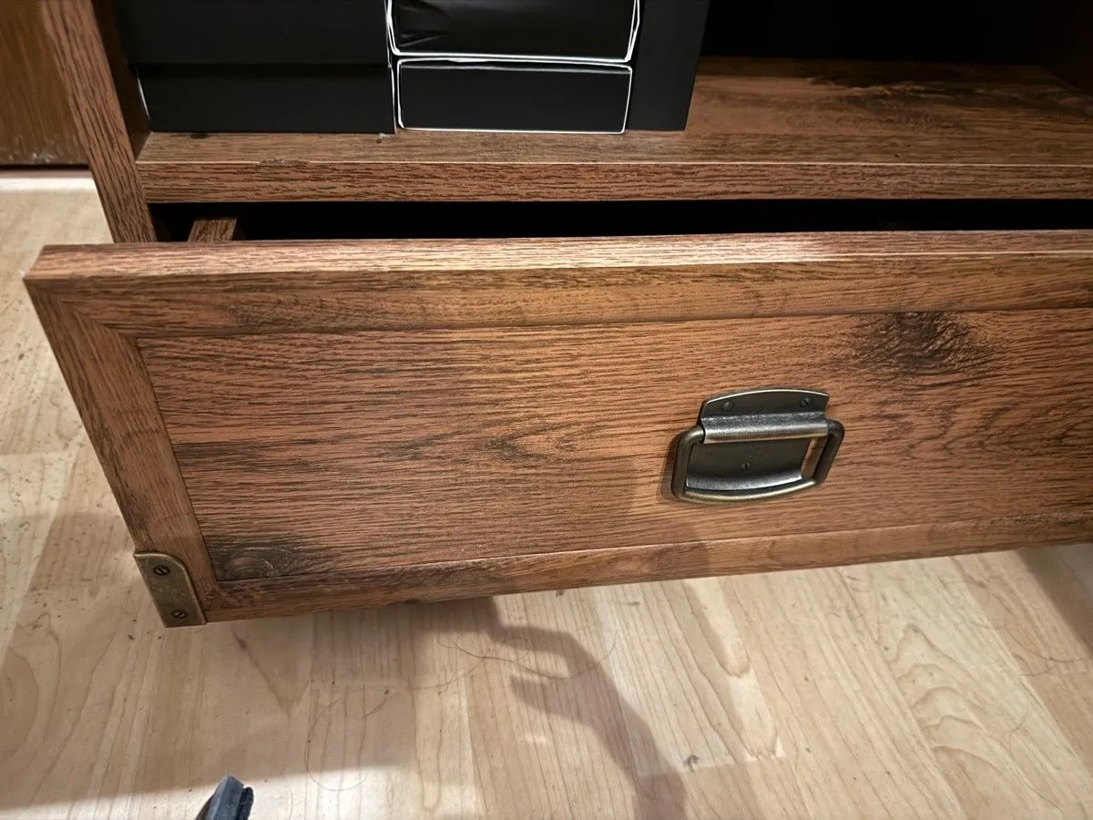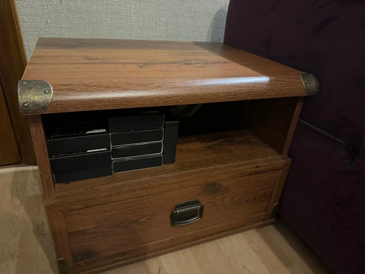 Тумбу привезли на второй день после заказа в надежной упаковке, помогли занести на этаж. Со сборкой разобрался самостоятельно. Очень понравилась расцветка: прекрасно подошла к остальной мебели в комнате. А ее винтажный стиль умиляет мою мамулю!