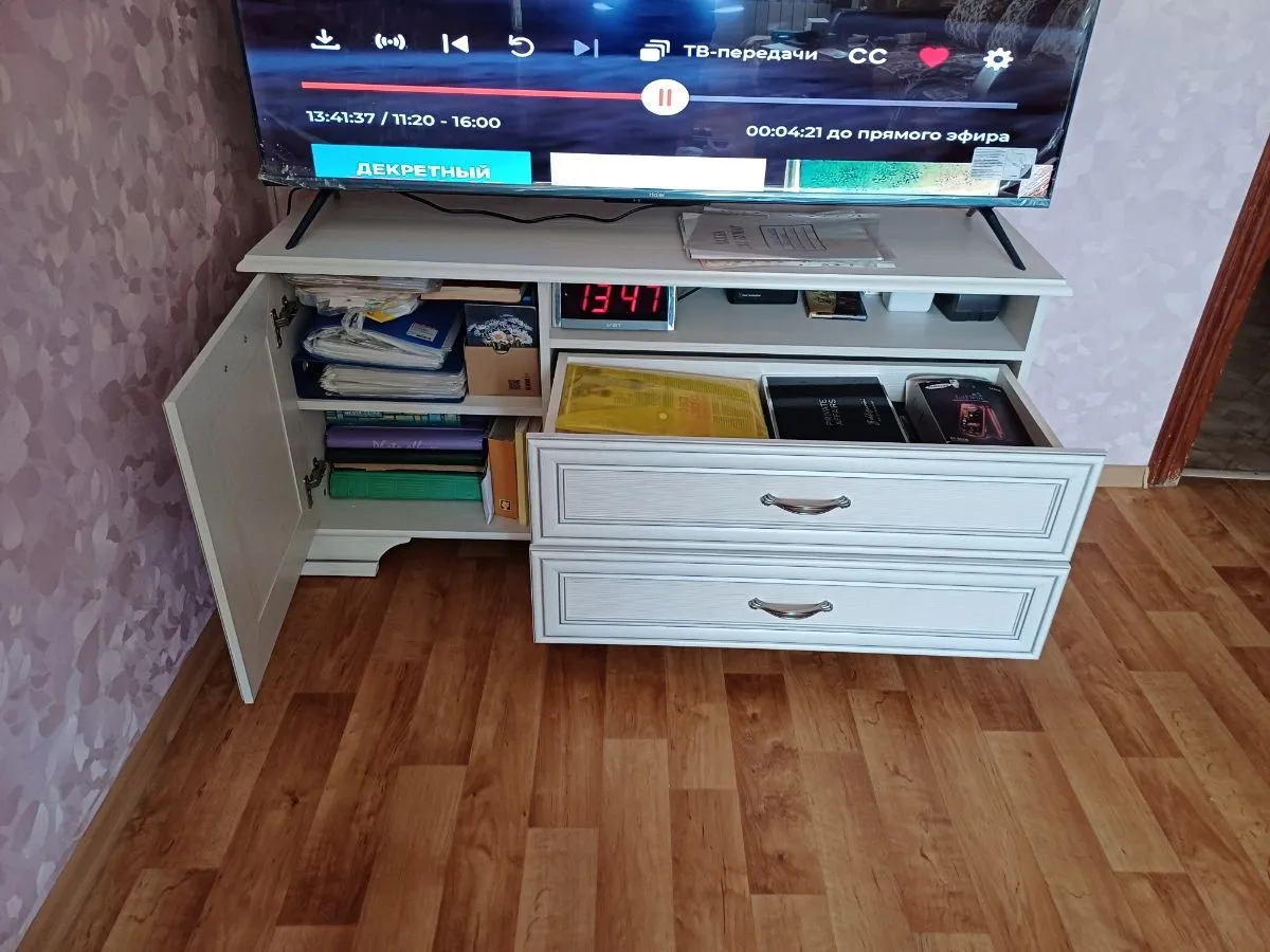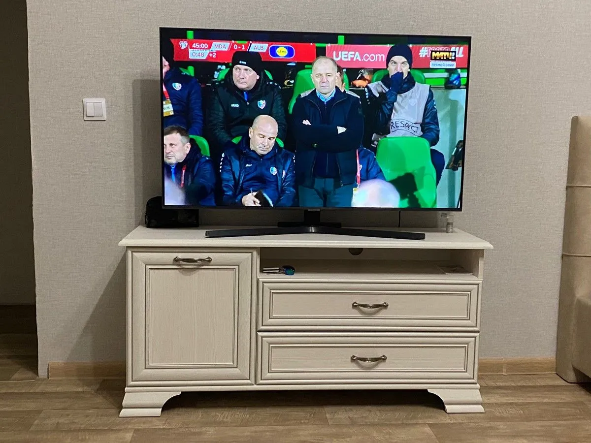 Прямоугольная тумба Tiffany RTV 1D2SN – разработка белорусского бренда Anrex. Создавая эту модель, производитель придал ей удлиненную форму, удобную для размещения телевизионной техники и оснастил широкими, устойчивыми ножками. Ее высота составляет 62 см и ширина 130 см, что позволяет установить ТВ любой диагонали. Под крышкой имеется отделение с отверстием для проводов и размещения аудиотехники.