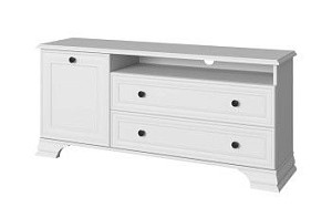 Тумба RTV 1D2SN с патинированными рамками и резными ножками идеально создана для гостиных классического стиля. Она прекрасно сочетается с навесной полкой коллекции «Тиффани» и другой мебелью аналогичного дизайна.