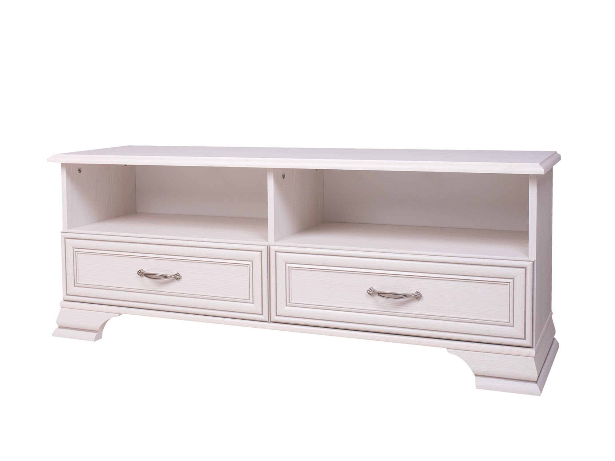 Просторная и вместительная тумба RTV 2S2N – популярная модель коллекции Tiffany из серии мебели для гостиных. Это оригинальная модель на ножках с двумя открытыми отделениями и ящиками. Ее ширина составляет 130 см и высота 50 см, что оптимально для установки телевизора диагональю более 40 дюймов.