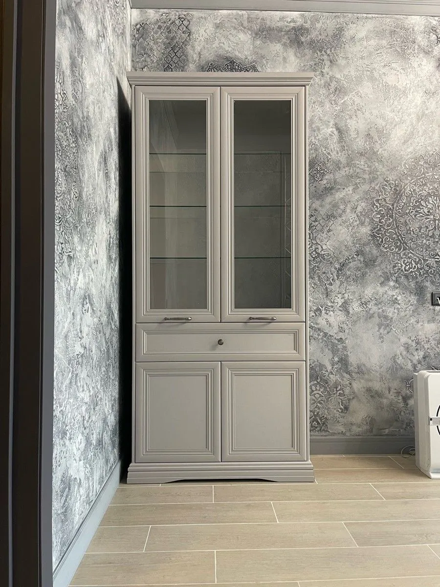 Шкаф с витриной Валенсия 2V2D1S Н серый