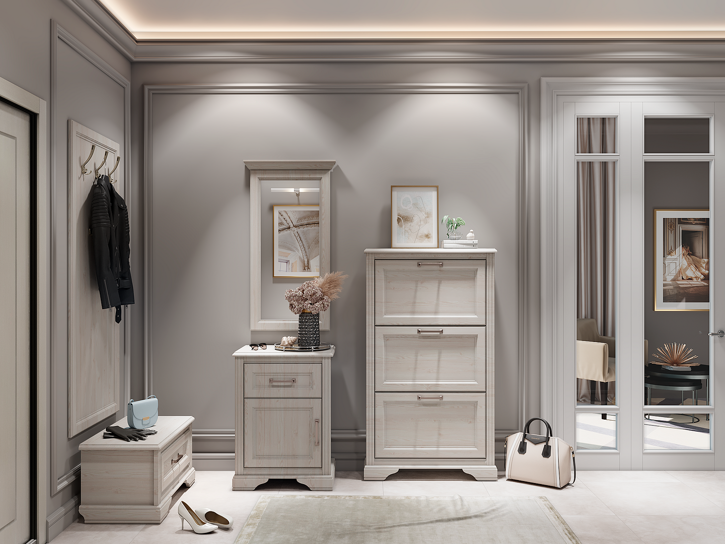 Настенное зеркало цвета сибирской лиственницы Stylius можно разместить у входной двери, повесить над тумбой или комодом, изготовленным белорусским производителем BRW. Простая, но элегантная рама из ламинированной ЛДСП подойдет классическим и неоклассическим интерьерам.